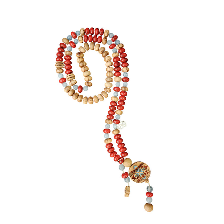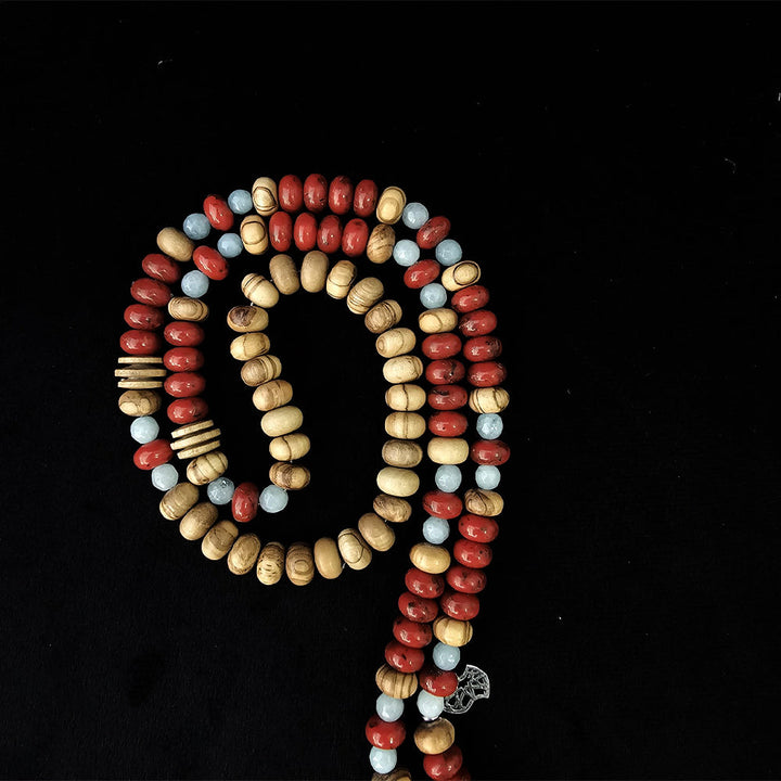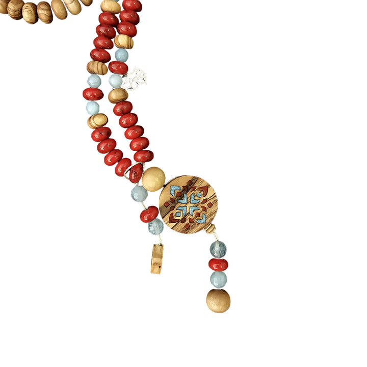 سبحة الورد الاحمر الطبيعى مع خشب الزيتون مطعمه ب مسبعات عقيق اكوا مارين سنتر بيس زيتون حفر تسقيط الوان الورد