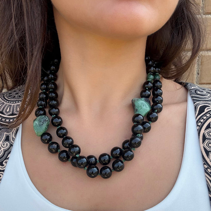 سبحة ٦٦ من اليسر ممزوجة بثلاث قطع من خام حجر الزويست الأخضر من مجموعة صيف ٢٠٢٥ - يمكنك استخدامها بأكثر من طريقة