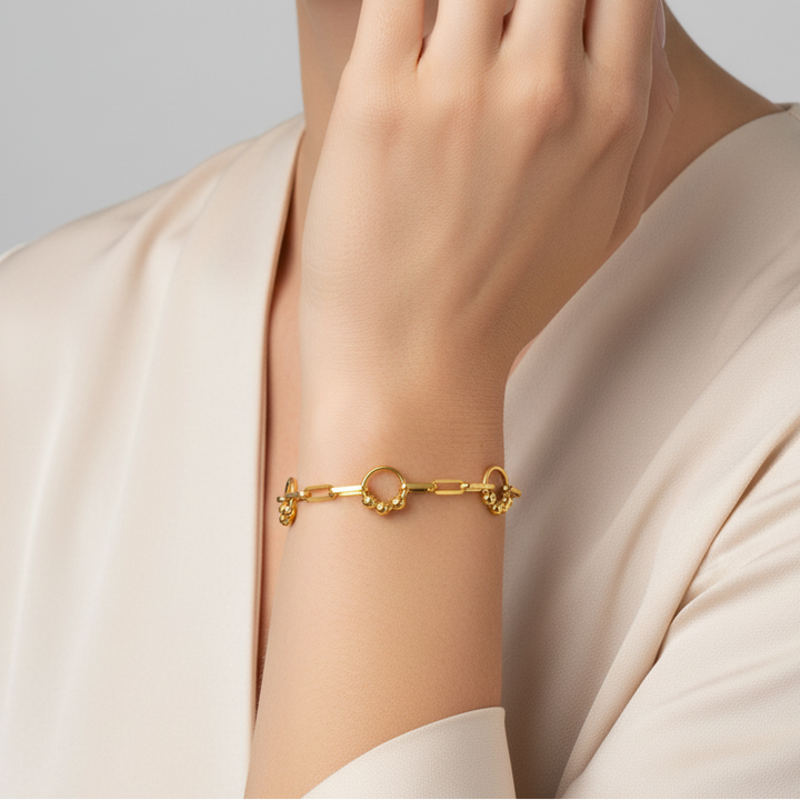 18K Yellow Gold Beaded Circle Link Bracelet - b25hl0019