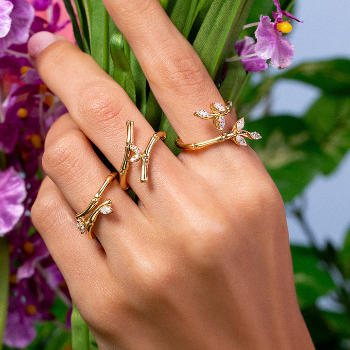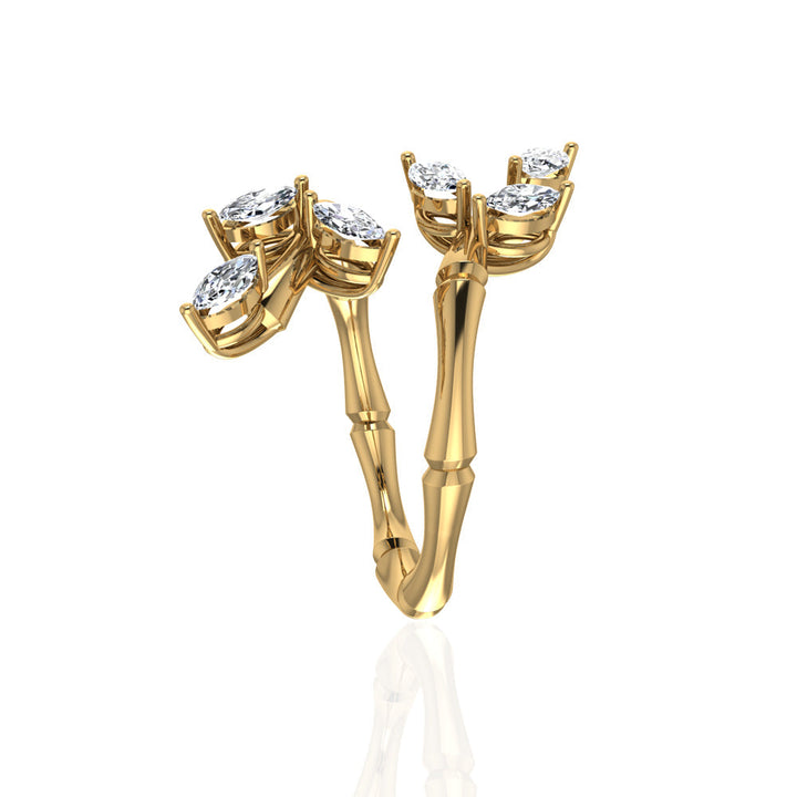 To match the rest of the Lucky Curled set, is the 18k gold long Lucky Curled ring, adorned with overlapping stalks featuring marquise cut diamonds.