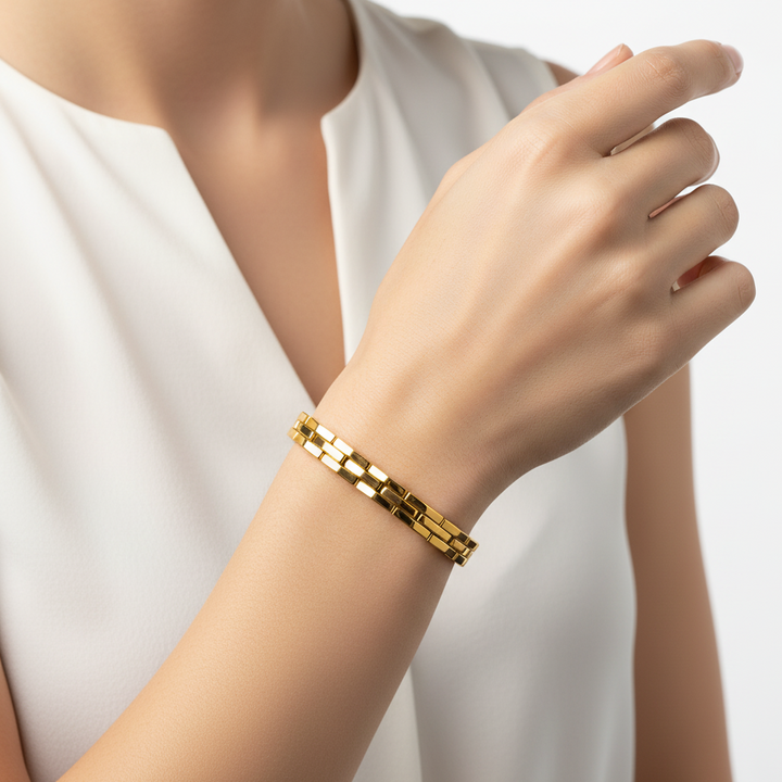 18K Yellow Gold Geometric Link Bracelet - B23PR0283
