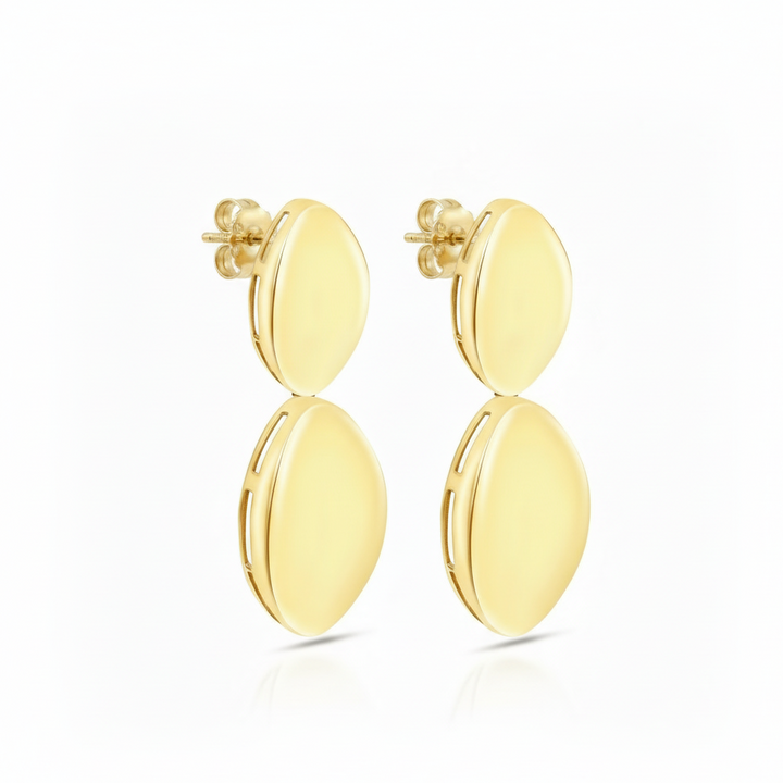 18K Yellow Gold Smooth Pebble Drop Earrings - K-E201G/B