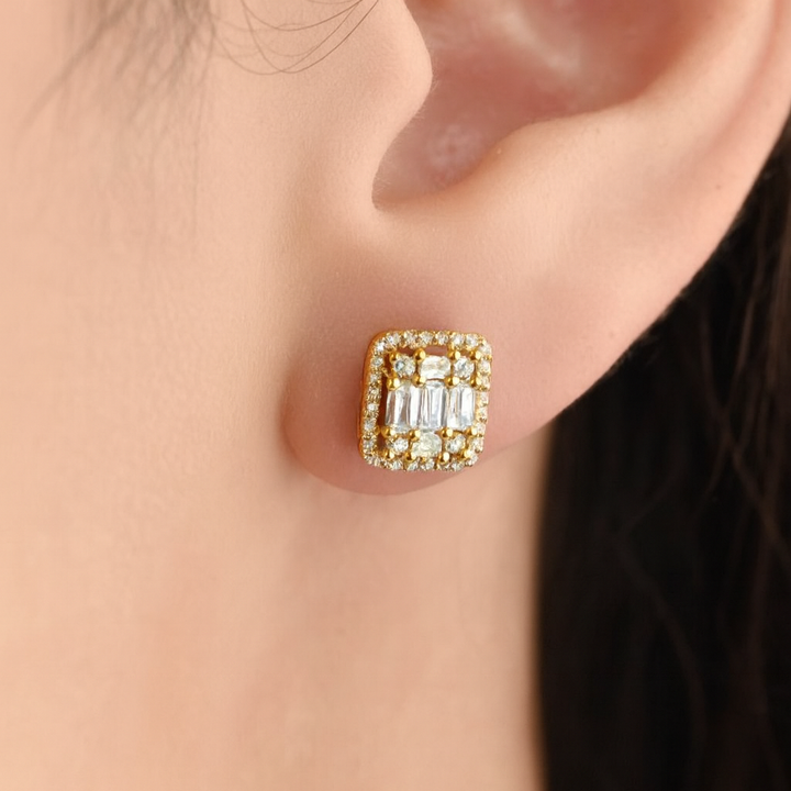 Square shape diamond stud in 18k Yellow gold - SIR410E